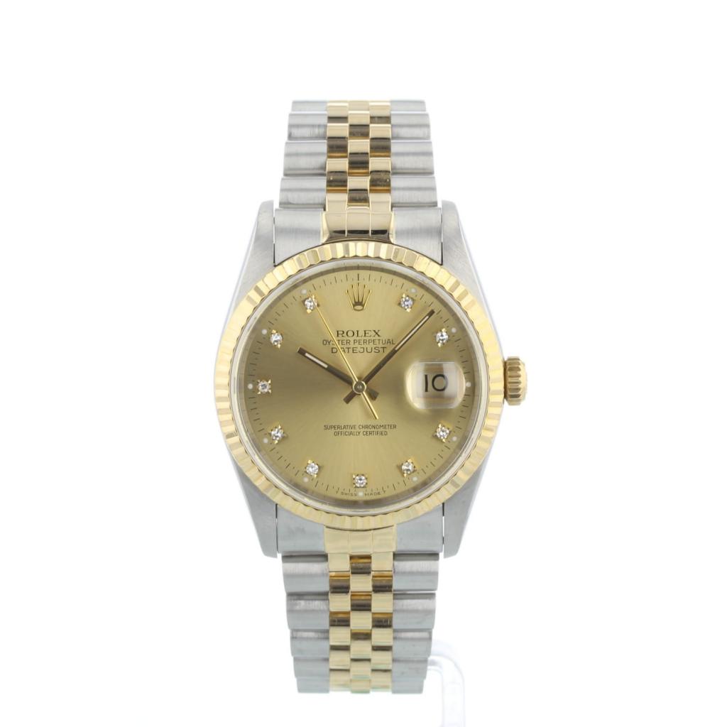 Gents Rolex DateJust 16233 18ct Yellow Gold & Stainless Steel case with Champagne Diamond Set dial