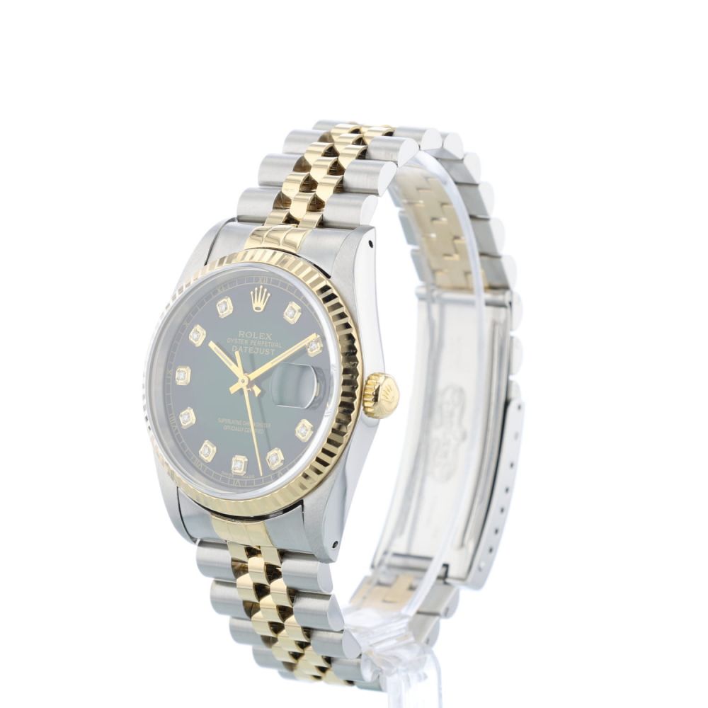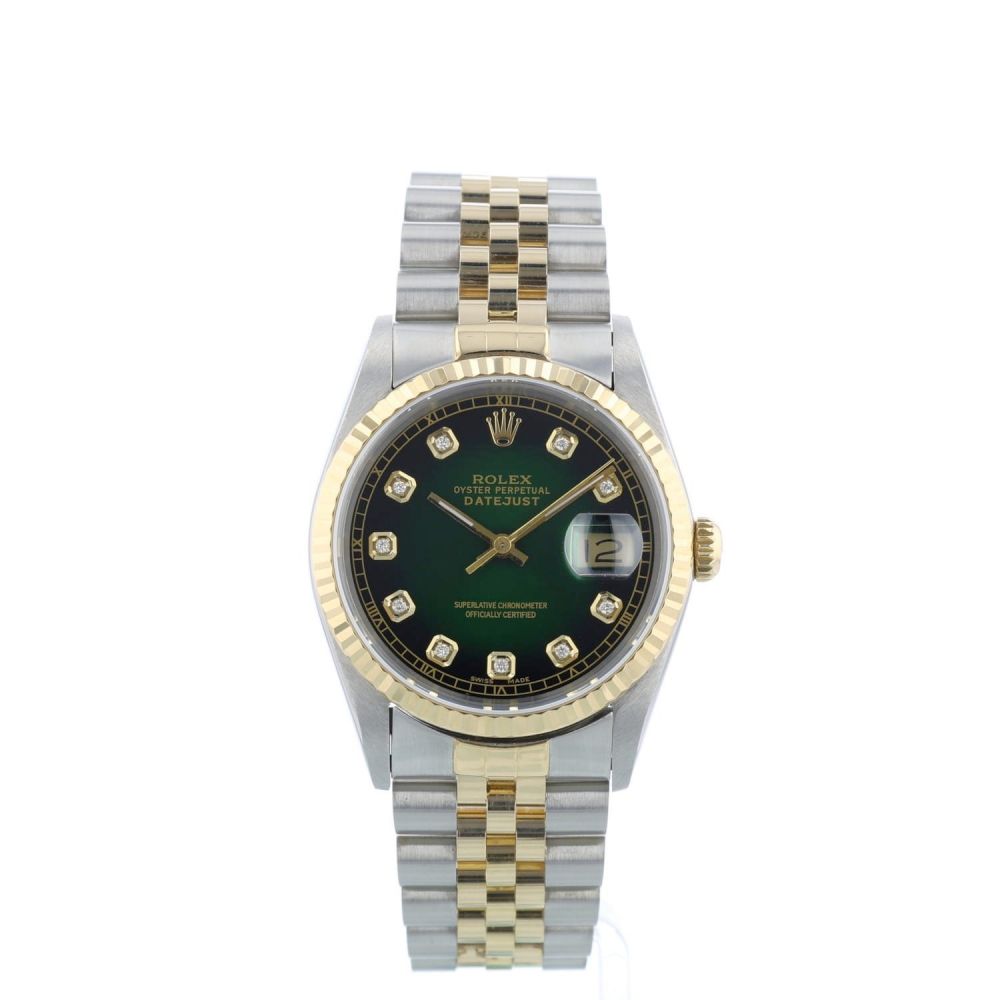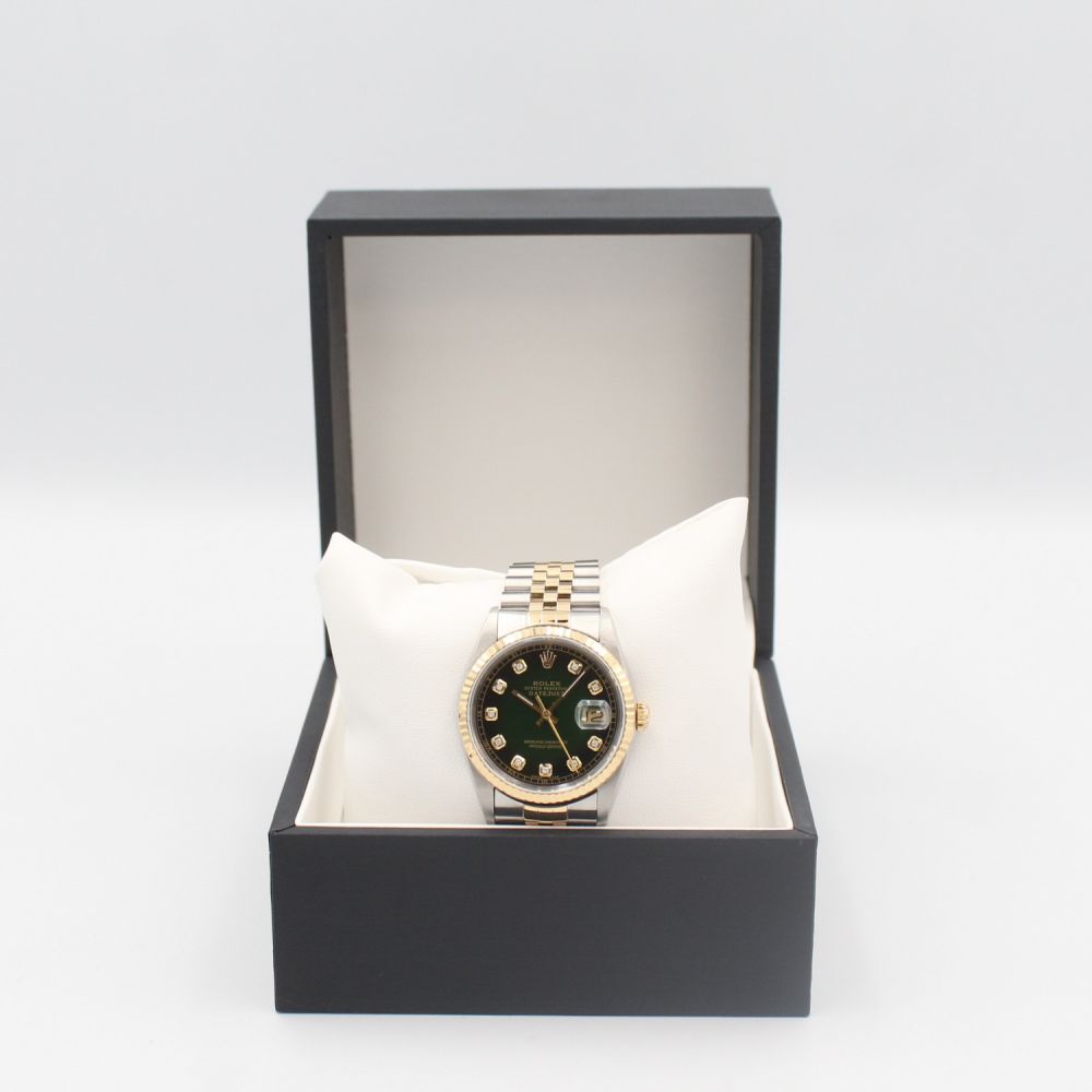 Gents Rolex DateJust 36 16233 18ct Yellow Gold & Stainless Steel case with Green Diamond Set dial