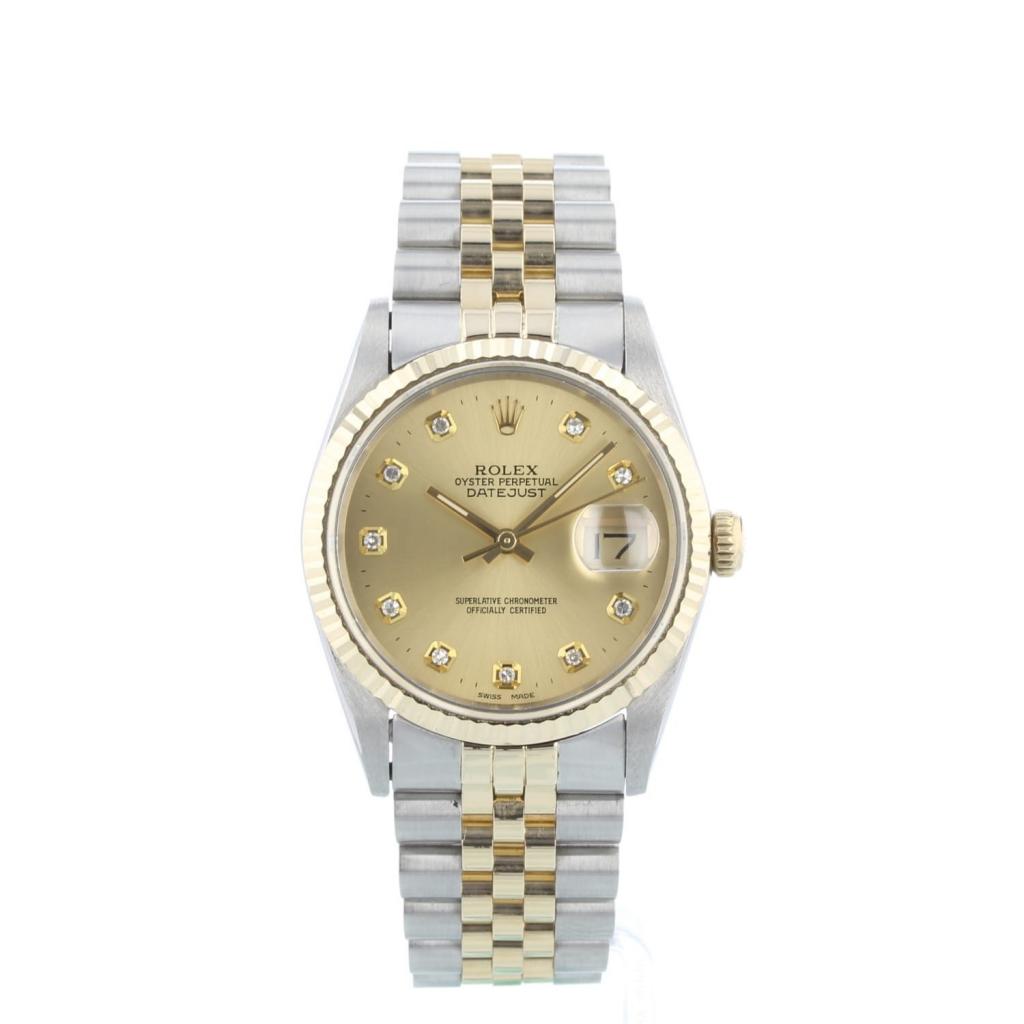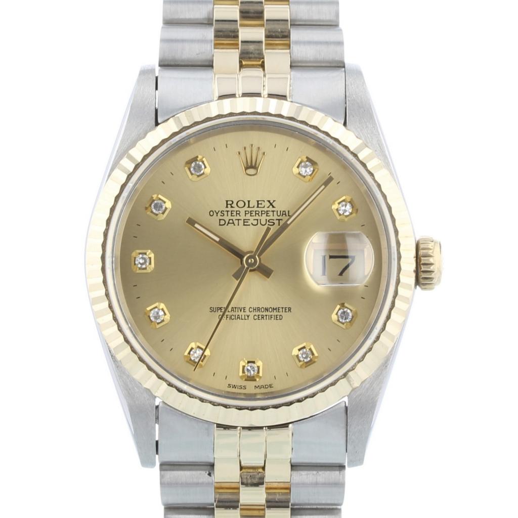 Gents Rolex Datejust 16233 18ct Yellow Gold & Stainless Steel case with Champagne Diamond Set dial