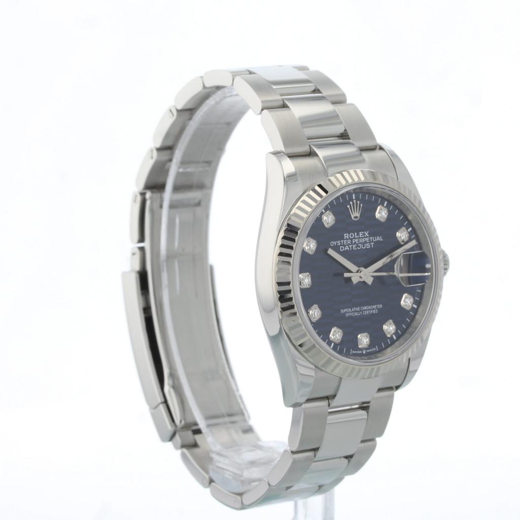 Gents Rolex Datejust 36 126234 Steel case with Blue Fluted Motif Diamond dial