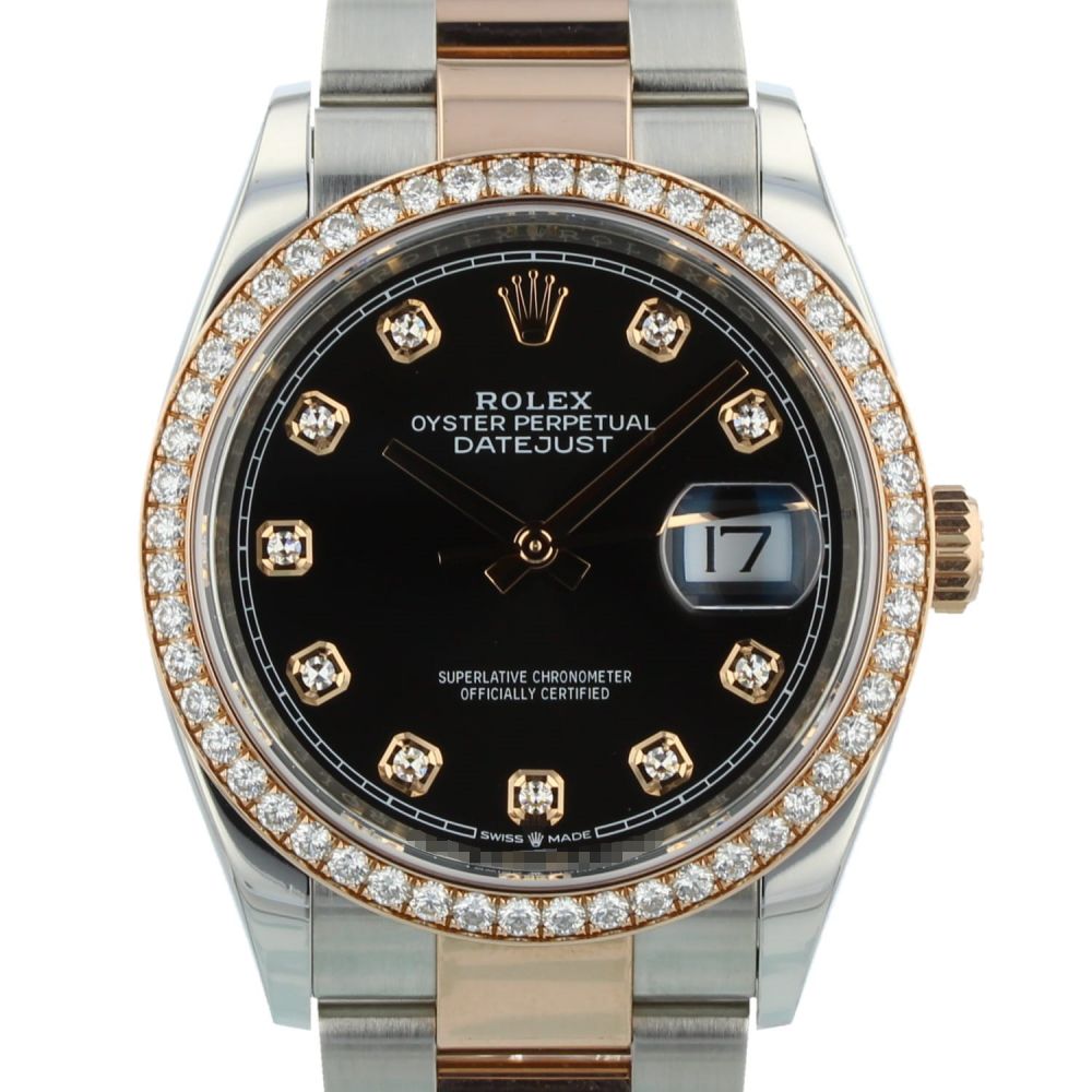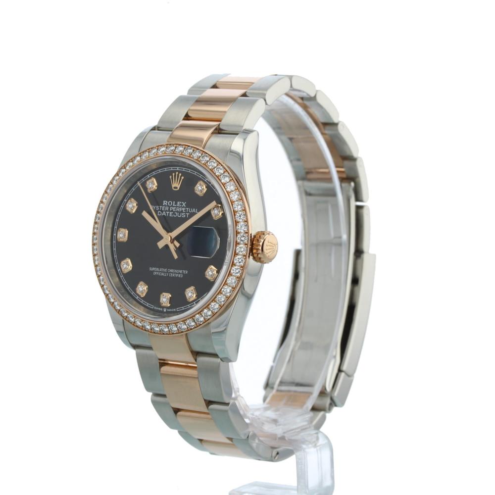 Gents Rolex Datejust 36 126281RBR 18ct Rose Gold & Stainless Steel case with Black Diamond Set dial